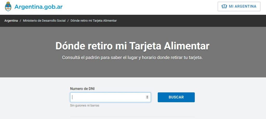 El Ministerio de Desarrollo Social puso a disposición una página para consultar el padrón de Tarjeta Alimentar con DNI. Ingresá a https://tarjetaalimentaria.argentina.gob.ar/.