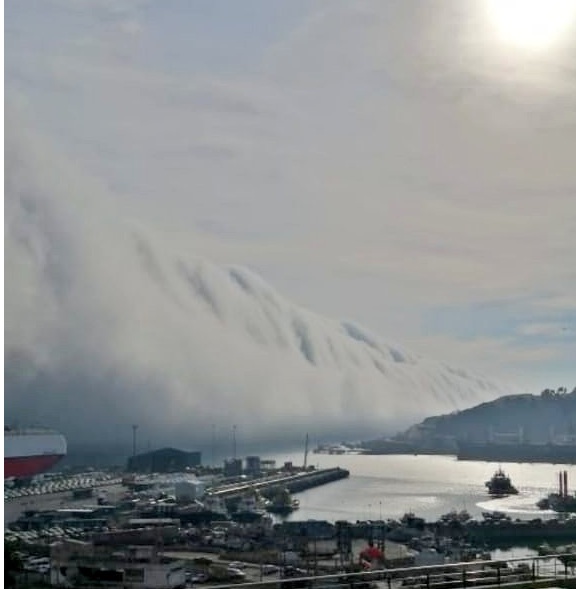 “Esa barra o esa nube que se visualiza en la línea de costa es la diferencia entre la masa de aire un poco más cálida, que está sobre la ciudad de San Antonio, versus la parcela de aire con un alto contenido de humedad y más fría. Esa interacción a dos parcelas de aire genera esta barrera de nubosidad que aparenta ser como una nube gigante”, agregó.