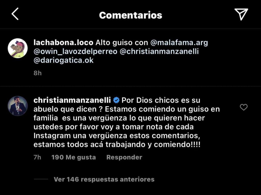 La filmación fue captada por Christian Manzanelli, representante de Palacios, y luego subido a las redes sociales. Consultado por La Viola, respaldó al cantante y señaló: “A Hernán yo lo conozco hace muchos años, es un gran hombre. Esa era la primera vez que ellos se veían, yo la llevé a ella a grabar un video a la casa de él. No pasó nada de lo que se dice, comimos un guiso entre amigos”.