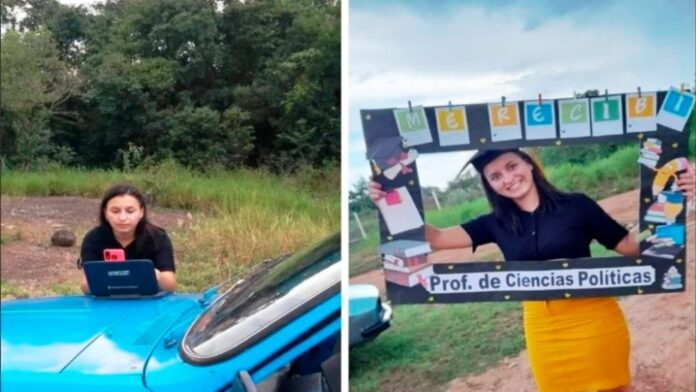Aldana Fedorischak, de 23 años, debía rendir su última materia de manera online para recibirse de profesora de Ciencia Políticas, pero lamentablemente se le cortó la luz en el pueblo misionero de Cerro Azul y se quedó sin internet.
